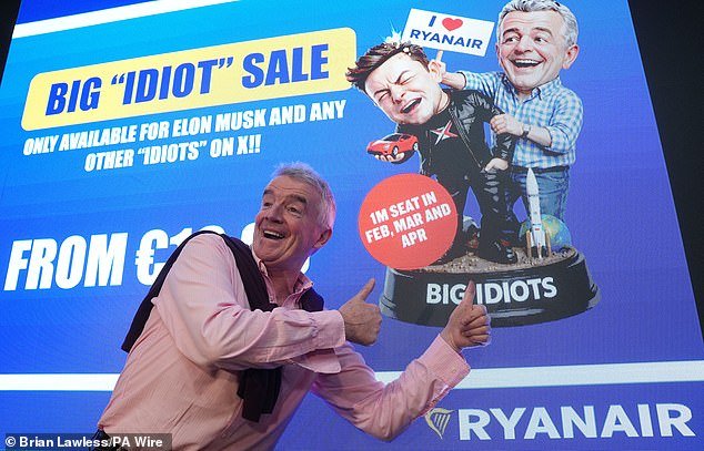 勢利小人:當瑞安航空表示使用馬斯克的 Starlink 互聯網服務將產生 2500 億美元的賬單時,瑞安航空老闆邁克爾·奧利裡(如圖)和埃隆·馬斯克之間的爭吵爆發了。