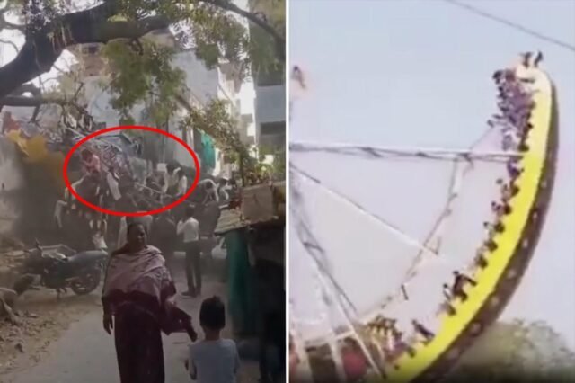 一段可怕的視頻顯示,印度一座過度擁擠的旋轉木馬突然倒塌,數十名尖叫的年輕騎手沖倒在地。