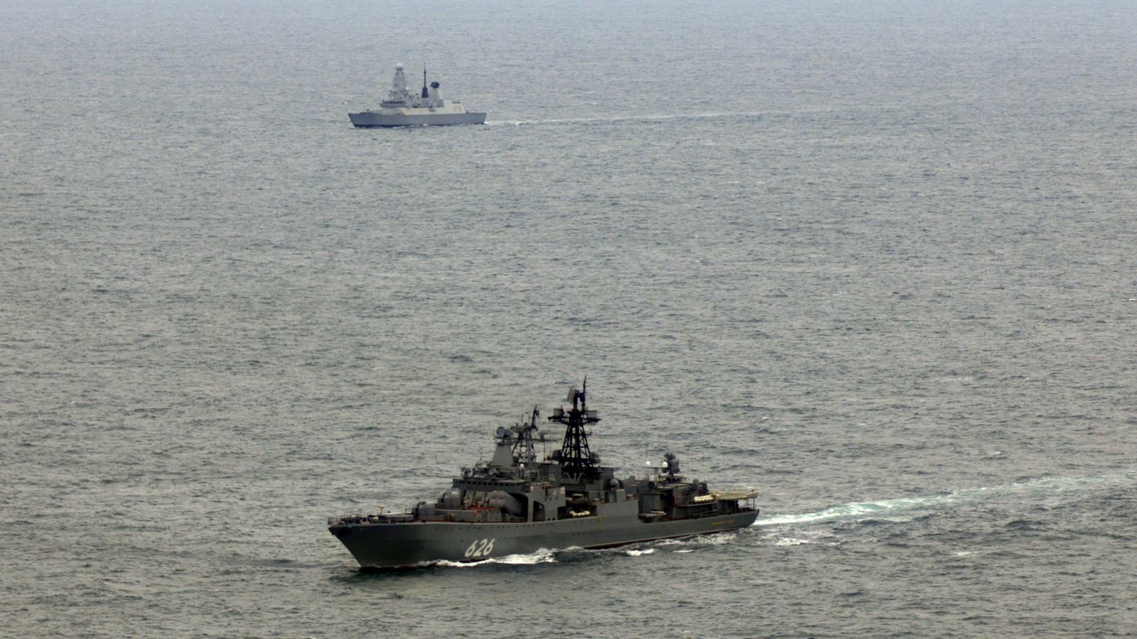 45 型驅逐艦和野貓直升機被派來跟踪俄羅斯海軍中將庫拉科夫號驅逐艦。