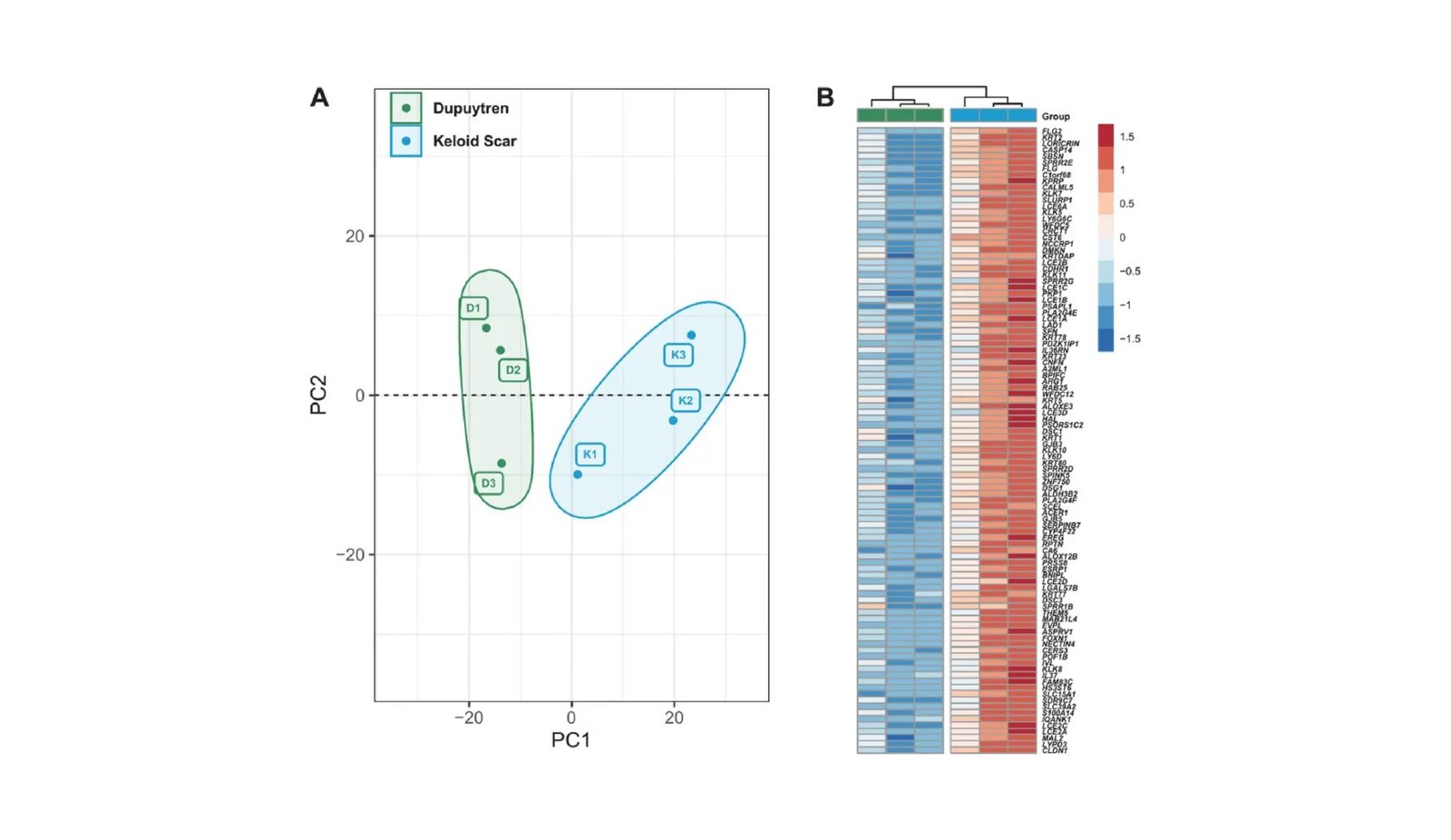 團隊開始通過從兩種情況下收集組織,以確保所有道德準則和參與者同意。之後,他們使用現代基因檢查整個基因組的所有活動。與Dupuytren病相比,這種方法使他們只能鑑定乳突中或多或少的活性基因,從而清楚地說明了獨特的生物學過程和在每種情況下發揮的途徑。