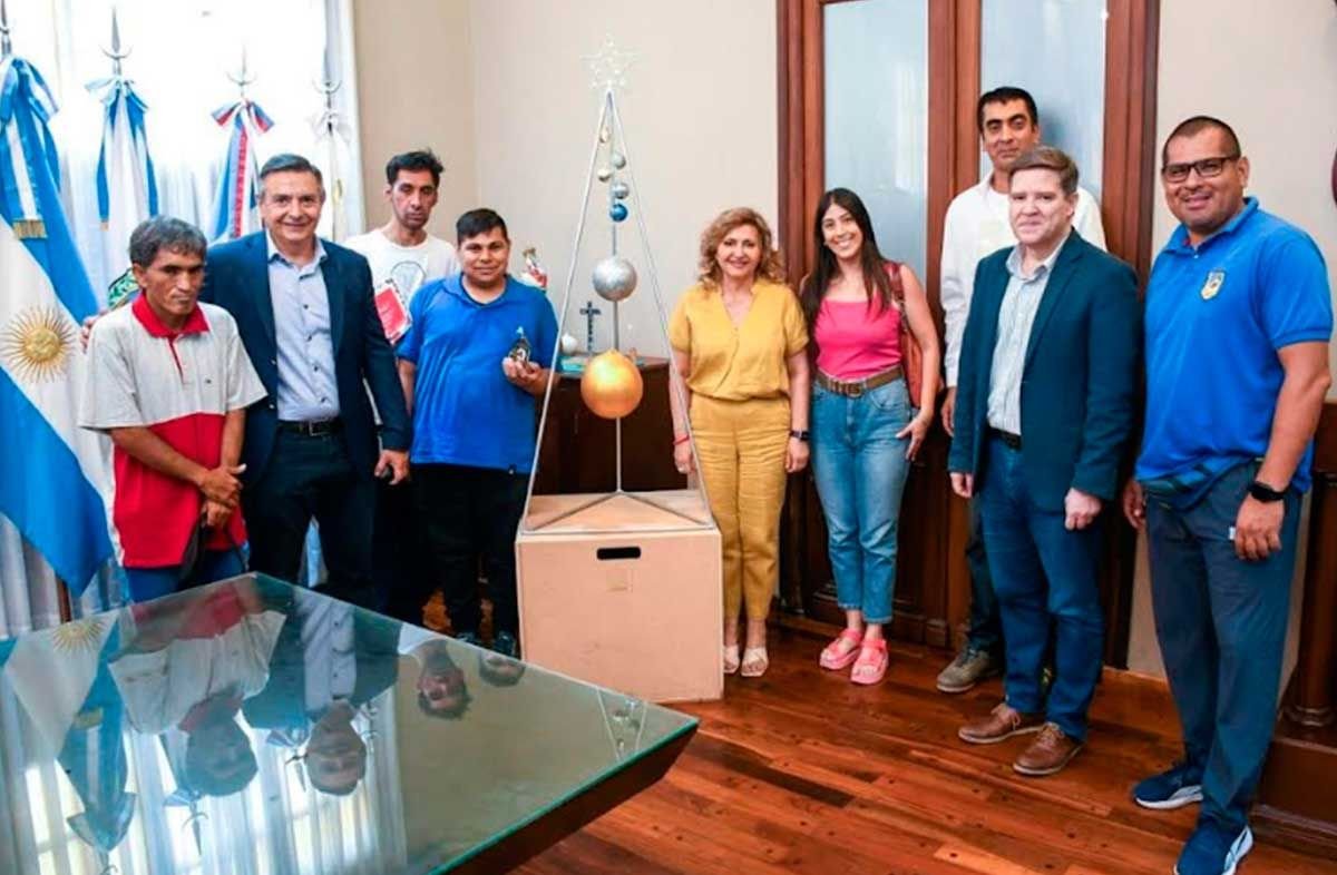 這 首都秘書M. Norma Fuentes接待了阿斯巴迪特殊就業和治療培訓中心的學生來訪,他們向他贈送了一棵他們在受保護的鐵匠作坊裡親手製作的聖誕樹。