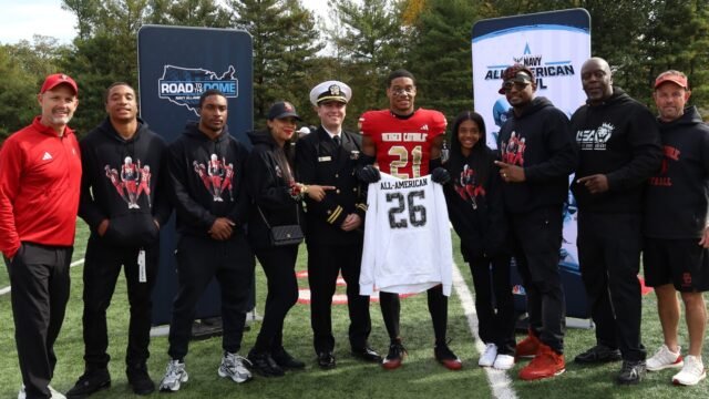 作為 NBC 體育頻道旗下的財產,全美碗是一系列精英賽事的一部分,其中包括奧運會和殘奧會、NBA、WNBA、聖母大學橄欖球賽、英超聯賽,以及 14 年來黃金時段排名第一的賽事。 週日晚上足球賽。全美碗是每年觀看次數最多、談論最多、最令人垂涎​​​​的高中全明星賽事,有超過 400 萬獨立電視觀眾和超過 25,000 名球迷參加。全美碗賽的歷史和傳統是無與倫比的,因為它包括: 631 個選秀權。 103 次超級碗冠軍; 274 次入選職業碗;和 18 名海斯曼決賽入圍者。請參閱了解更多信息 nbcsports.com/college-football/navy-all-american-bowl 或者在 Facebook、X 和 Instagram (aabonnbc) 上關注我們。